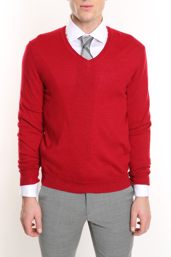 A classy V-neck sweater crafted from smooth refined Merino wool. Essential for layering when changing climates.